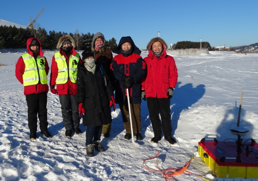 圖6 中國水科院專家和大連中睿科技發展有限公司工程師在黑龍江冰水探測現場